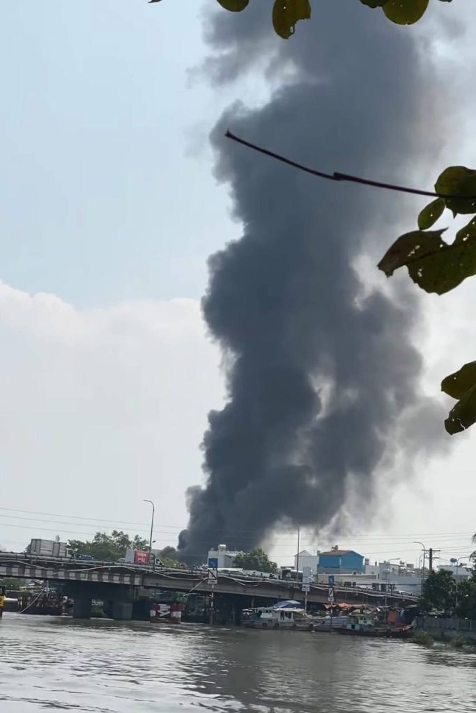 Một vụ cháy xe bồn nghiêm trọng xảy ra trên đường Huỳnh Tấn Phát, khu vực Quận 7 cũ (TP.HCM) khiến nhiều người dân hoảng hốt. Ngọn lửa bùng phát dữ dội, bao trùm phần đầu và thân xe, tạo cột khói đen dày đặc bốc cao, có thể quan sát từ xa. Vụ việc xảy ra gần khu dân cư và trụ điện, tiềm ẩn nguy cơ cháy lan, giao thông khu vực bị ảnh hưởng. Lực lượng chức năng nhanh chóng có mặt phong tỏa hiện trường, tổ chức chữa cháy và điều tra nguyên nhân.