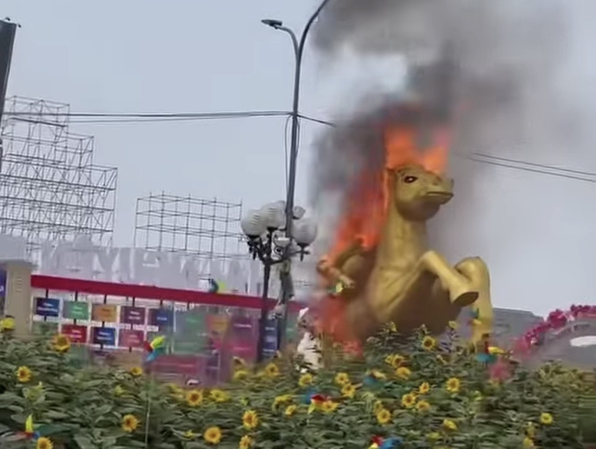 Linh vật ngựa bốc cháy ở Thái Nguyên. Video: Luân Trà My