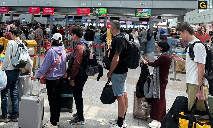 Khách chờ làm thủ tục ở sân bay Tân Sơn Nhất Tết Bính Ngọ 2026. Ảnh: Hạ Giang