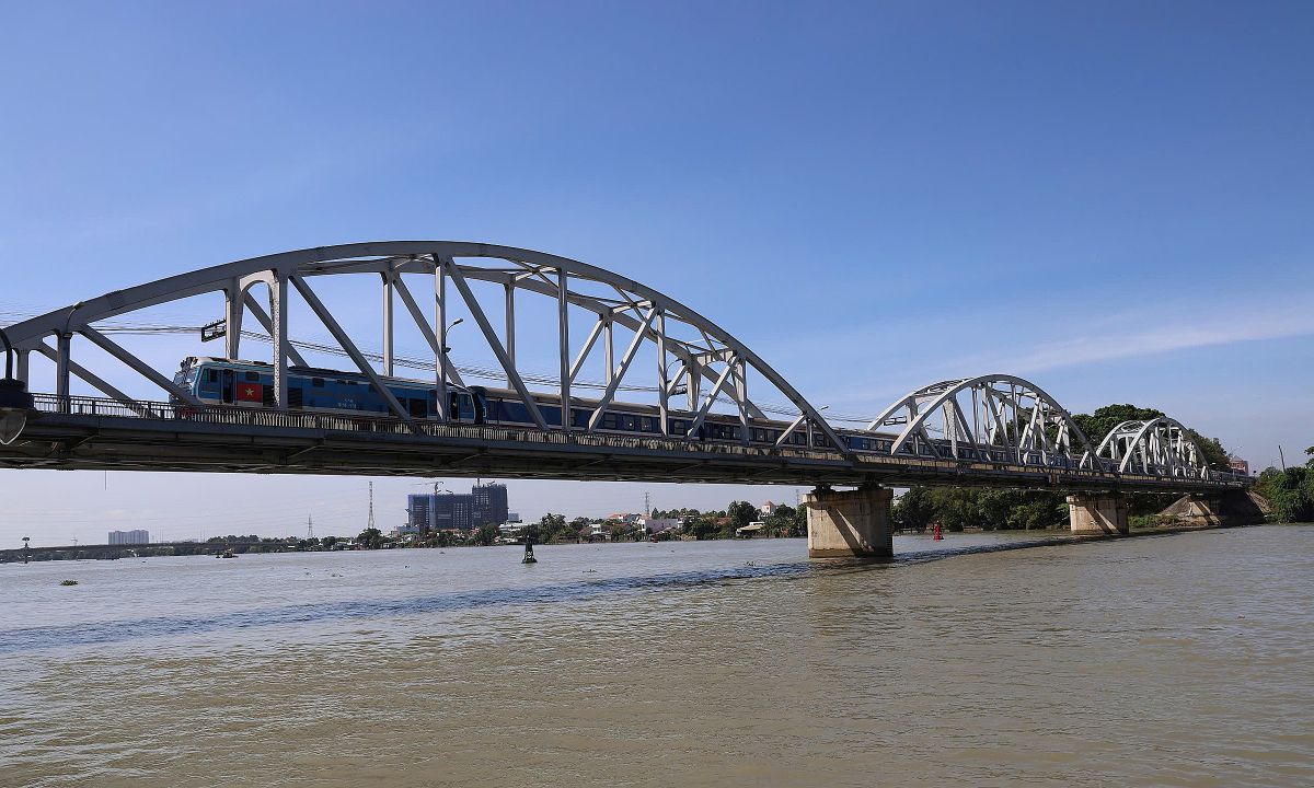 Chuyến tàu đầu tiên chạy qua cầu Ghềnh, sáng 11/3. Ảnh: Phước Tuấn